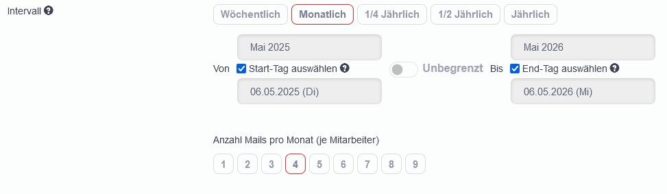 | Unbegrenzt | Es lässt sich ein Enddatum in einem sich öffnenden Kalender festlegen | ||