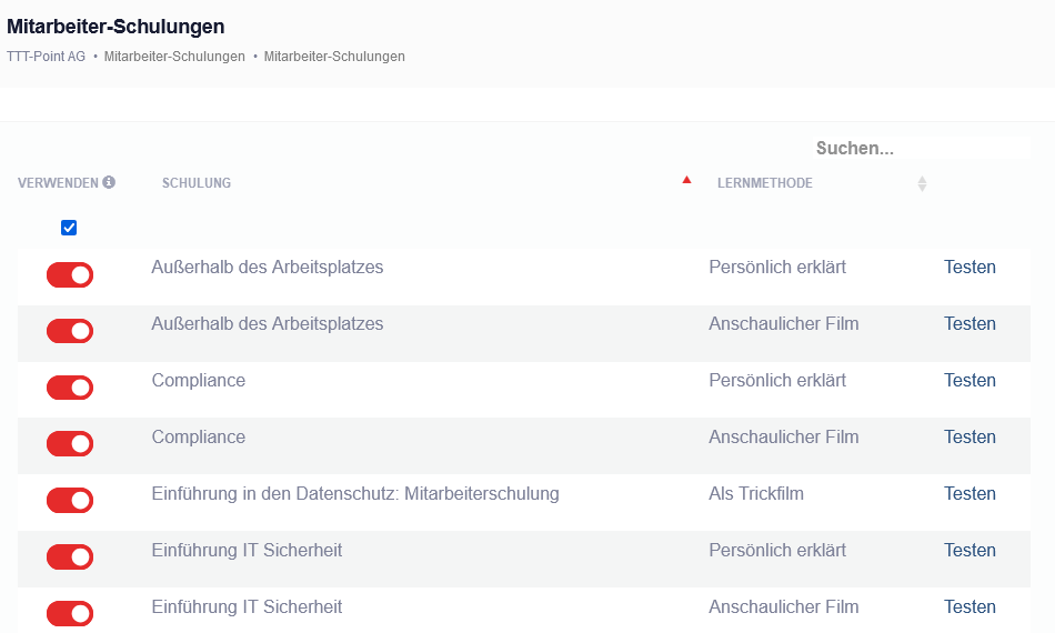 Das Menü Schulungen liefert einen Überblick über die Awareness-Next-Schulungen.