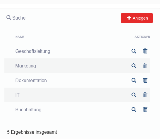 | Kontakbuch Gruppen | IT (3) Marketing (1) | Abteilungsgebundene Anzeige von Mitarbeitern. Sie können einzeln dem Darkweb-Scan zugewiesen oder von ihm ausgeschlossen werden | ![]() |