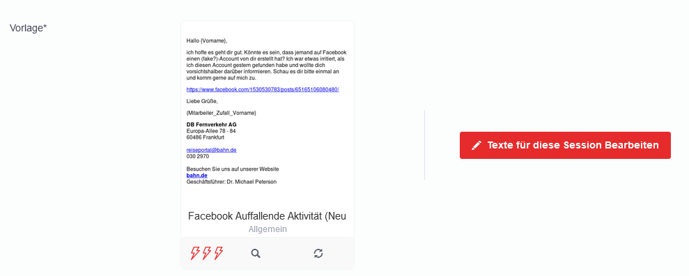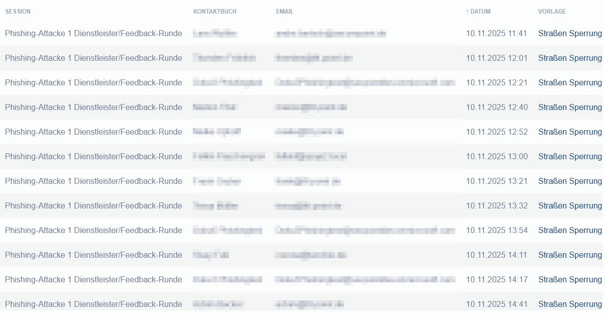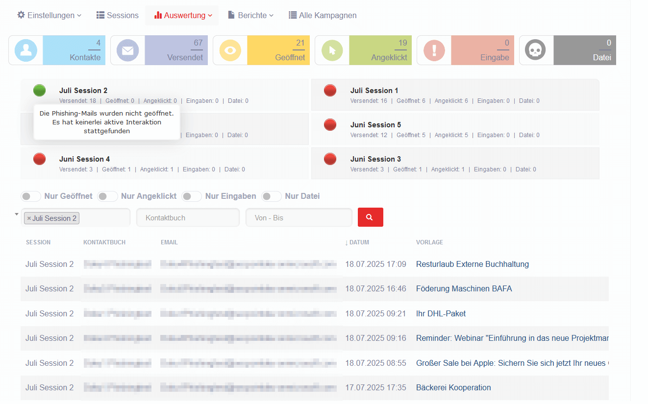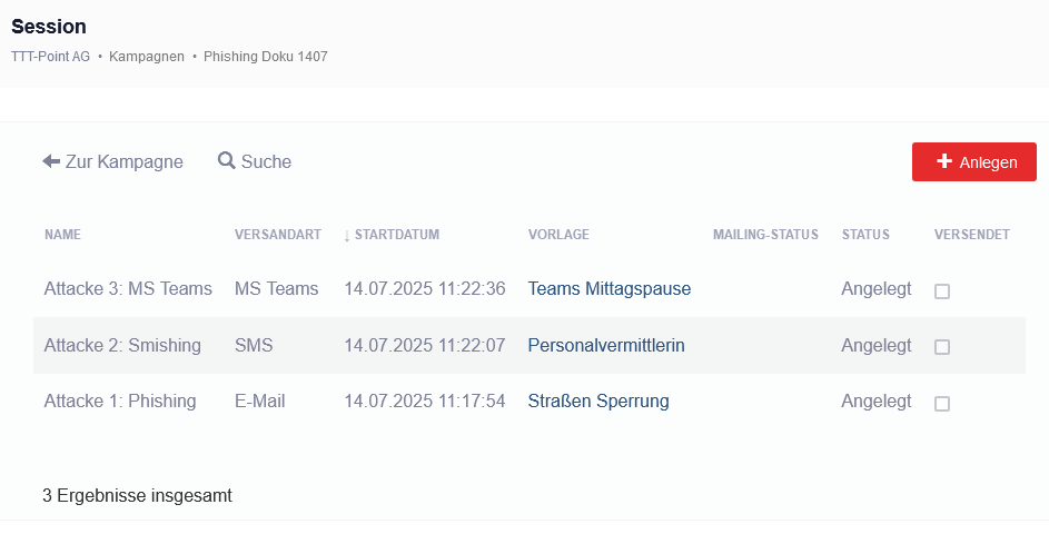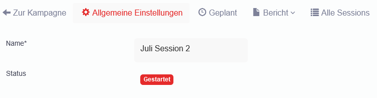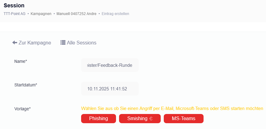 | Vorab angelegte Session öffnen, hier: Phishing-Session Vertrieb | |||
