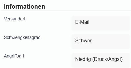 | Angriffsart | Niedrig (Druck/Angst) | Die psychologischen Trigger, die den Benutzer zum Agieren mit der Phishing-/Smishing- oder MS Teams Nachricht bewegt | |