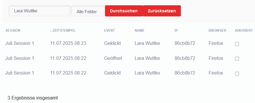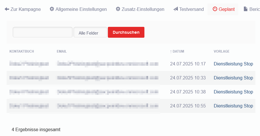 | Von - Bis | 11.06.2025 bis 23.07.2025 | Bestimmung eines Zeitraums per Kalender, aus dem Ergebnisse angezeigt werden | |