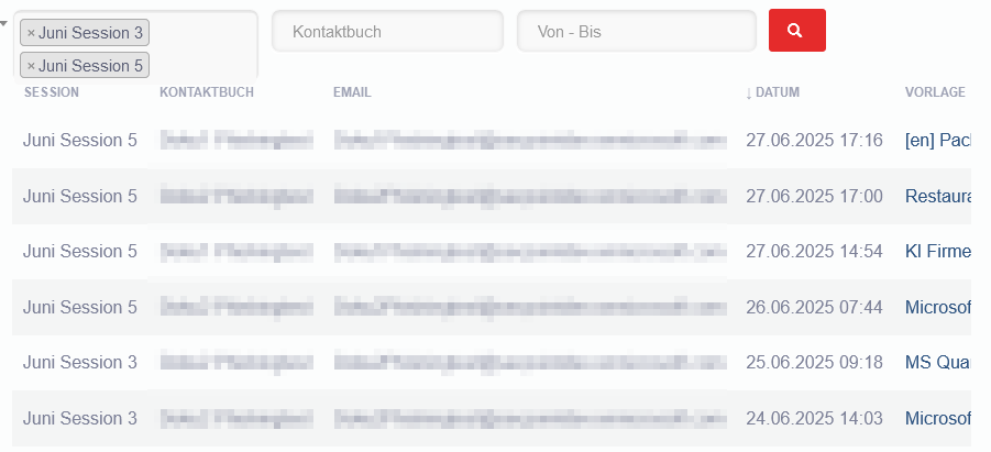 Filterung nach einer Session oder mehreren Sessions, hier: Juni Session 3 und 5 | ![]() |