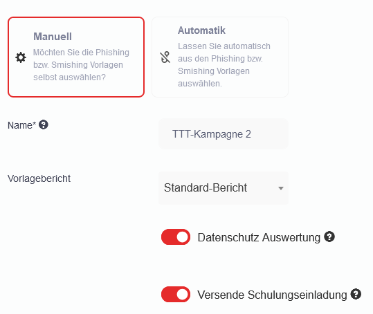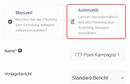 | Versandart | Zeigt an, wie die simulierte Attacke durchgeführt wurde. Alternative zu E-Mail: