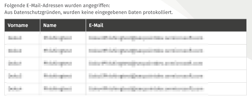 | Vorschau anzeigen | Über diesen Link kann man sich die jeweilige Landingpage anschauen, auf der man bei einem Klick auf einen Phishing-Link landet | ![]() | |