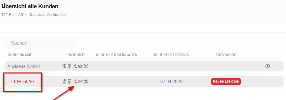Zur Anzeige der Details klickt man auf den Namen des jeweiligen Kunden.