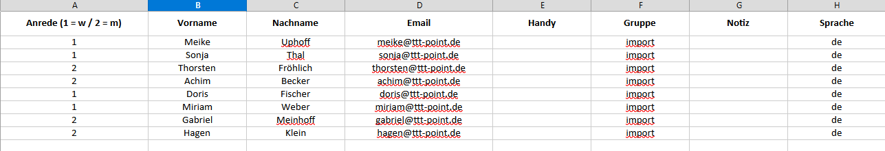 - Schritt 6: Zuvor exportierte XLS-Datei auswählen und importieren