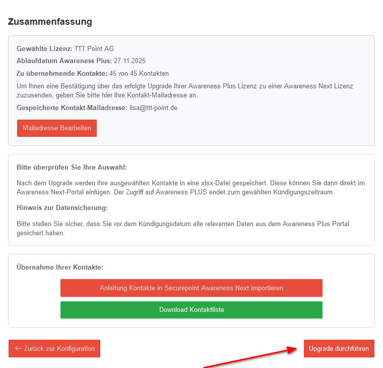Kontakt-Daten sichern und zu Awareness Next migrieren
