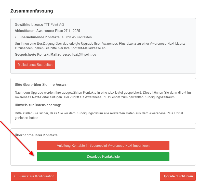 Schritt 1: Download der Awareness Plus Kontakte als Excel-Datei via Download Kontaktliste