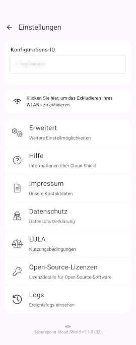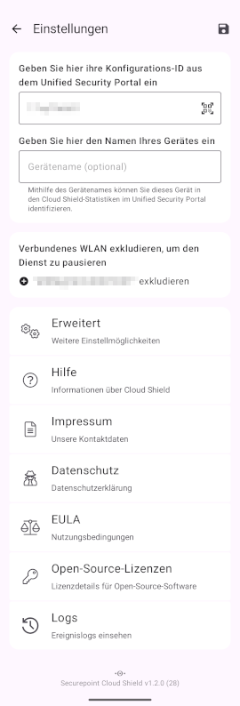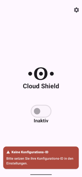 Damit die Cloud Shield App auf externen Android-Geräten genutzt werden kann, wird eine Konfigurations-ID benötigt
