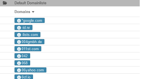 Es gibt 2 Listen an schützenswerten Domains: Die Benutzerdefinierte Domainliste und die Default Domainliste.