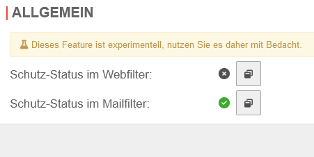 | Schutz-Status im Webfilter: | Zeigt an, dass die Ähnlichkeitserkennung im Webfilter deaktiviert ist. | ||