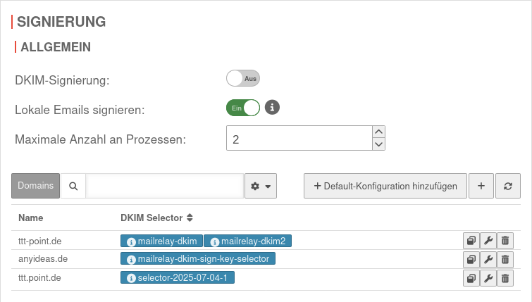Öffnet den Dialog zum Bearbeiten des Eintrags DKIM-Selektor bearbeiten UTMbenutzer@firewall.name.fqdnAnwendungenMailrelay