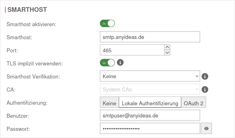 Die Konfiguration des Mailrelay findet unter Anwendungen Mailrelay statt.