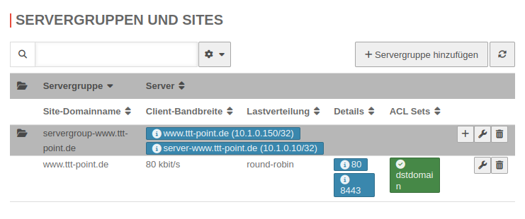 Ein weiteres Highlight bietet das Load-Balancing. Server können zu Gruppen zusammen gefasst werden, auf die die Anfragen dann mit dem gewählten Algorithmus (z.B. Round-Robin) verteilt werden.