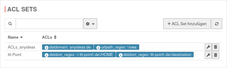 ACL Set hinzufügen Öffnet den Dialog um ACL Sets hinzuzufügen