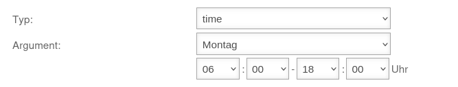 time Definiert einen Zeitraum, zu dem die Webseite aufgerufen werden muss M T W H F 9:00-17:00