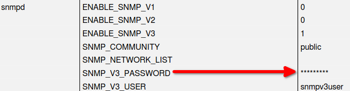 Passwörter und Zugangsdaten wie z.B. SNMP_V3_PASSWORD, Interface-Optionen, dyndns_user oder dyndns_password werden nicht mit angezeigt.