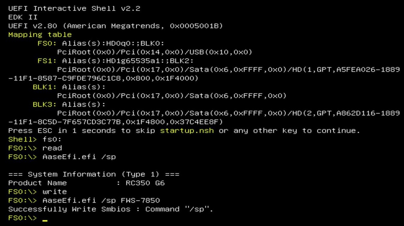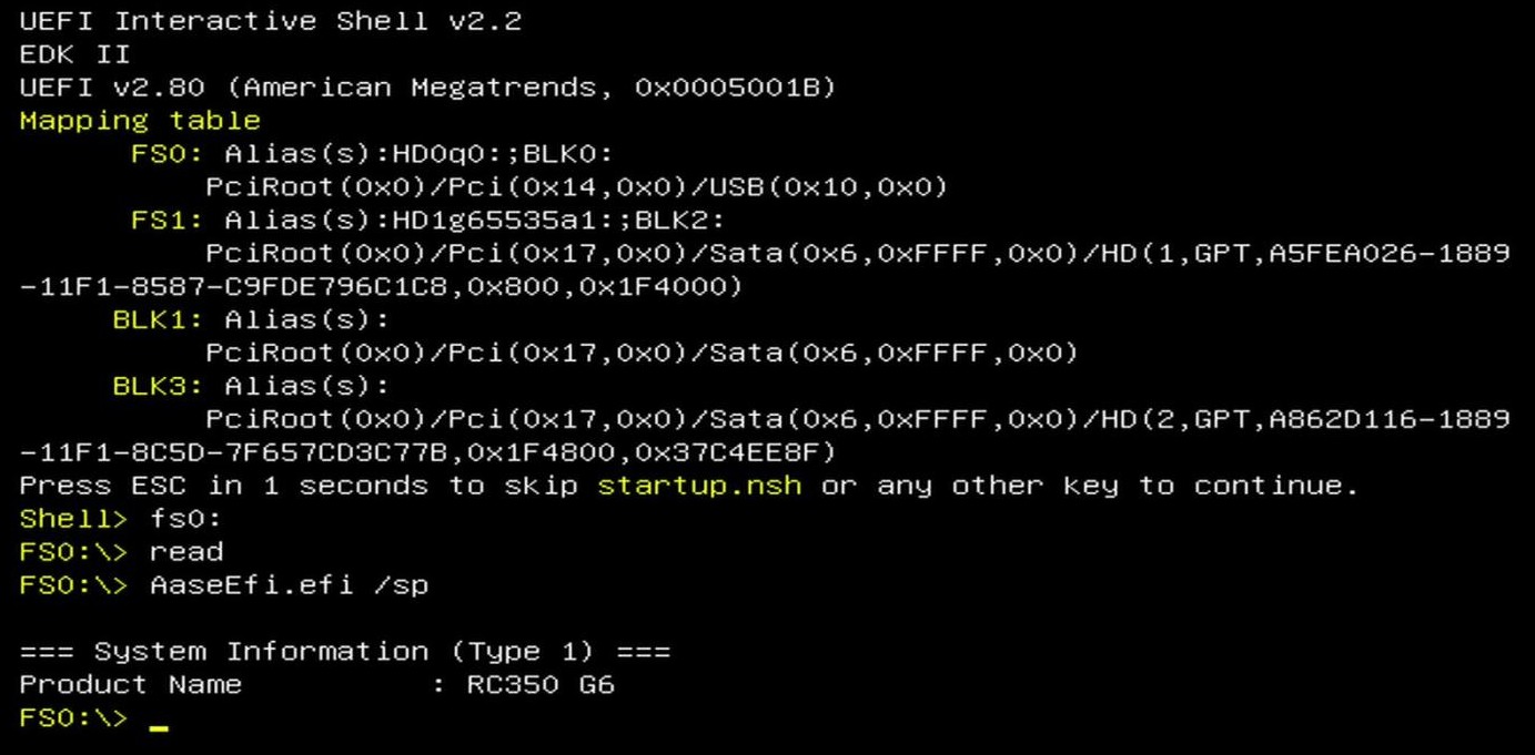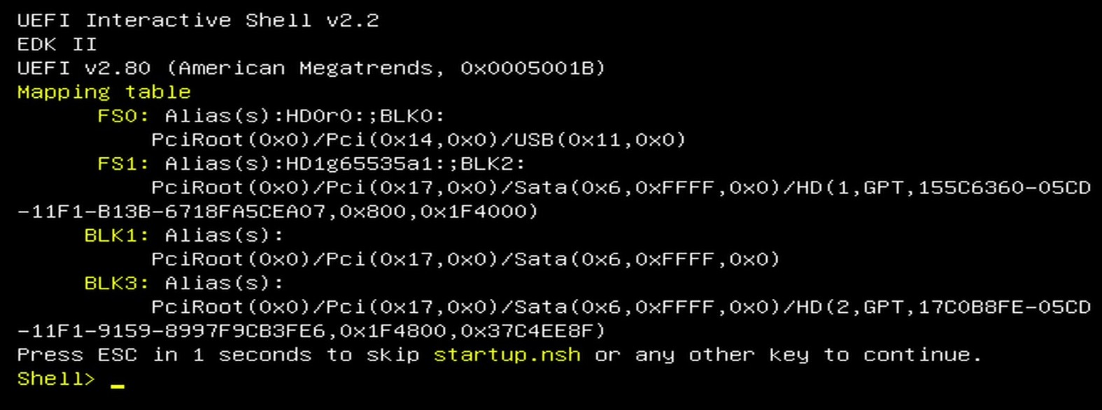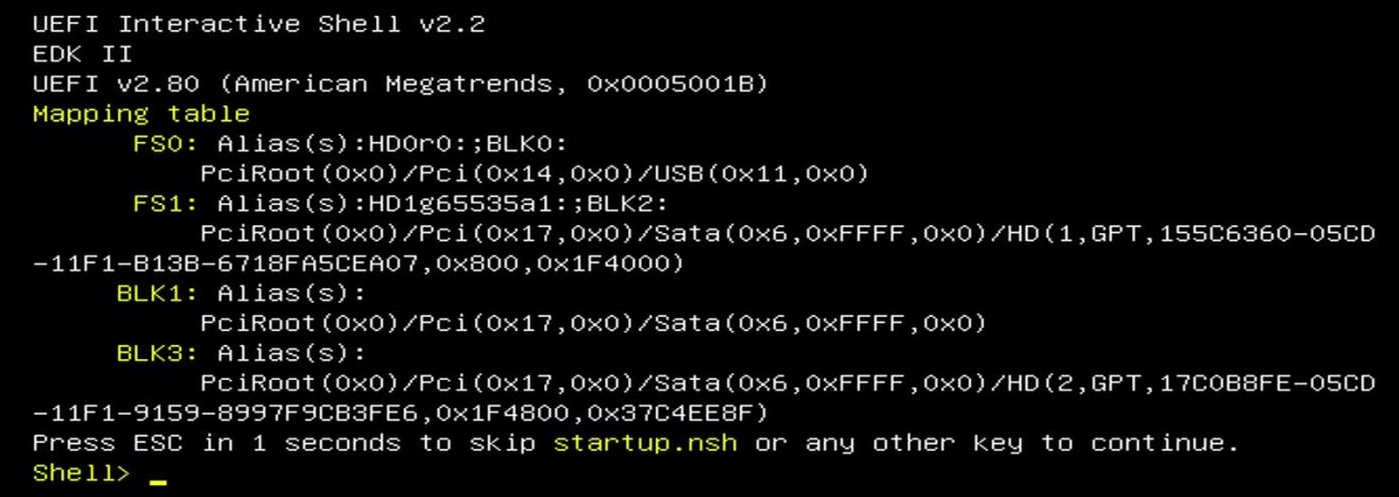 Falls nicht muss sie mit dem Power-Taster an der Rückseite gestartet werden. Sobald der Bootvorgang abgeschlossen ist, sollte die UTM nun in einer EFI-Shell sein.