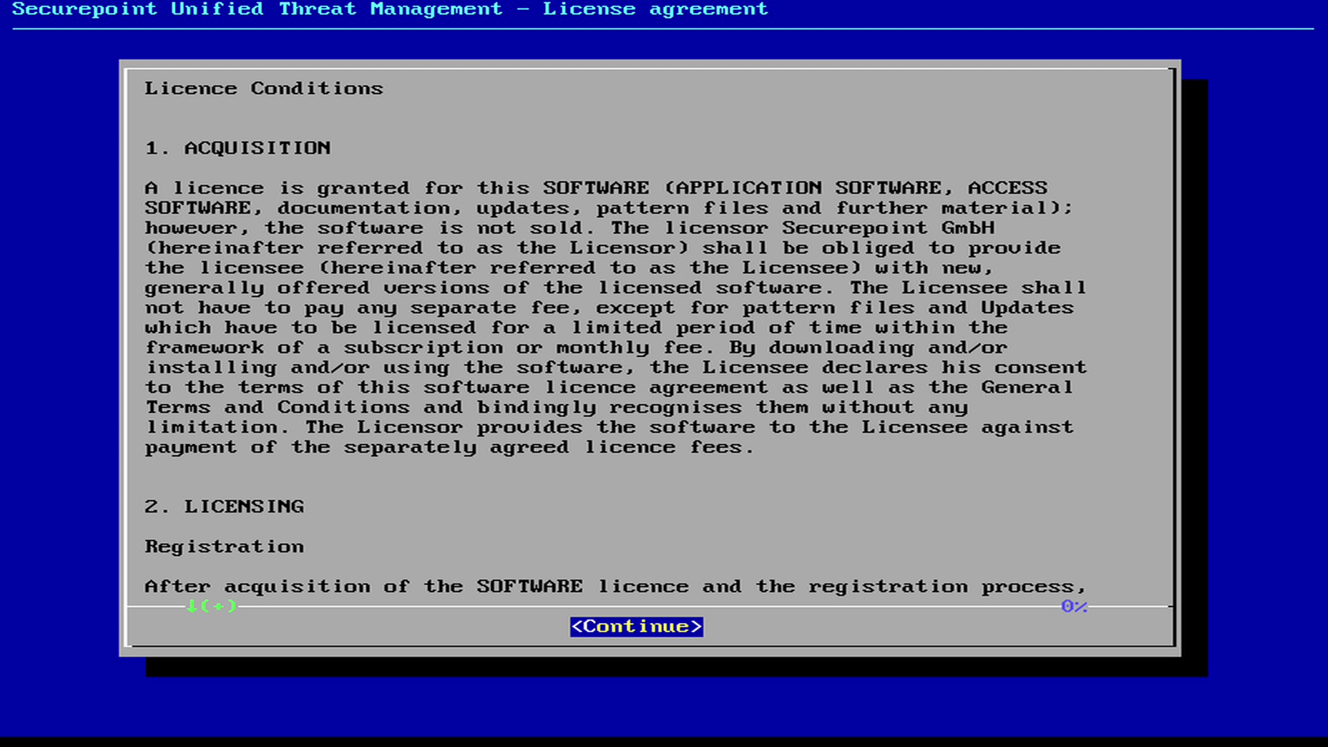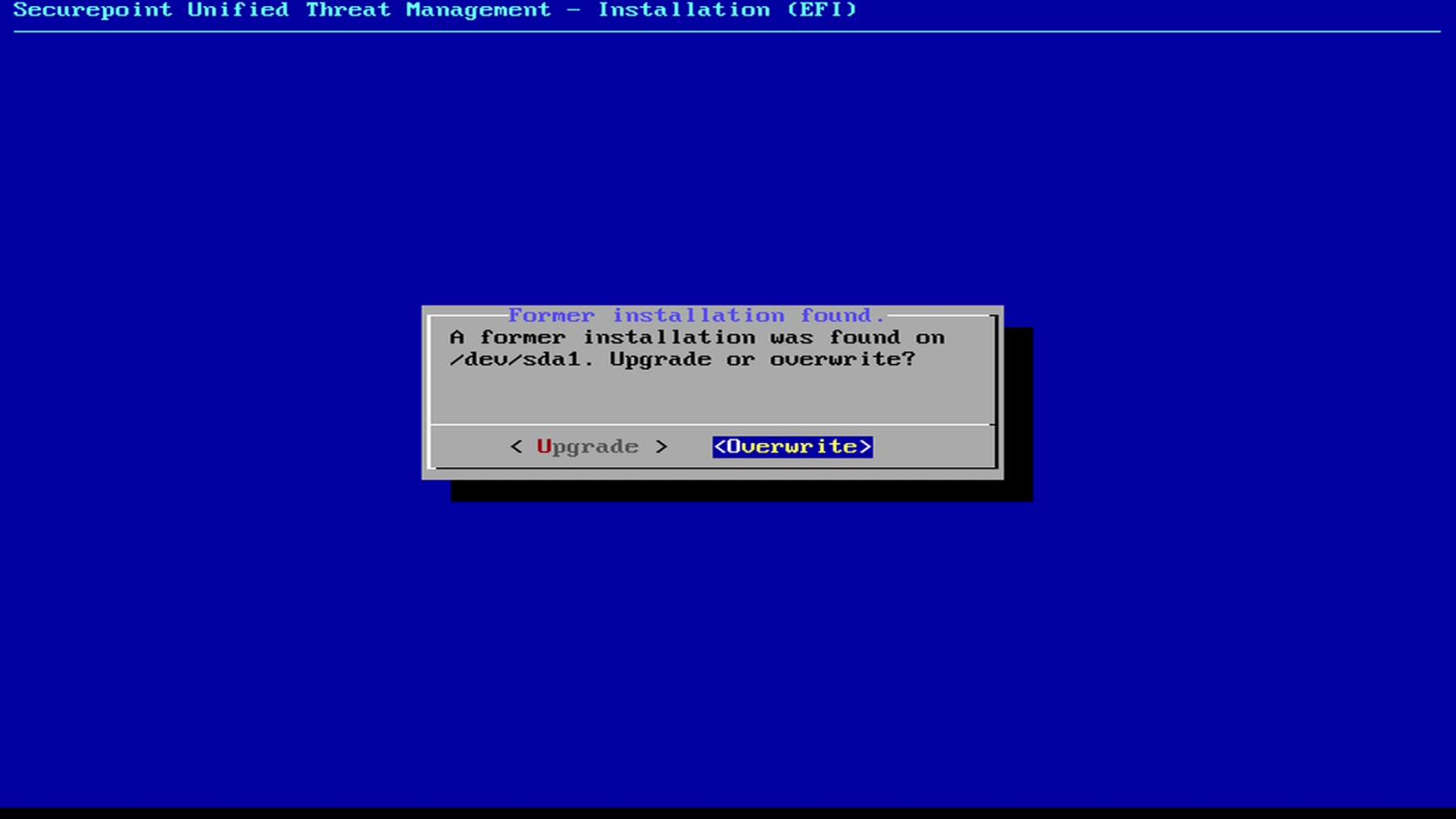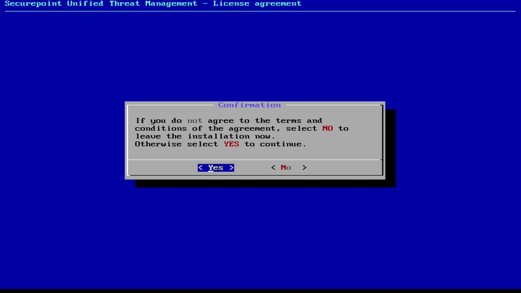 Nun den USB-Stick mit dem Securepoint-Imaging Tool, wie oben beschrieben, mit dem Securepoint UTM-Image überschreiben. Den USB-Stick einstecken und die Installation wie gewohnt durchführen.