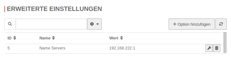 Domain Nameserver: 5 »192.168.222.1 Nameserver, wie in Schritt 2 konfiguriert