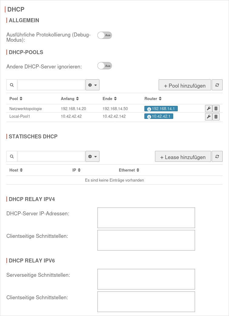 Es können mehrere DHCP-Pools hinzugefügt werden.