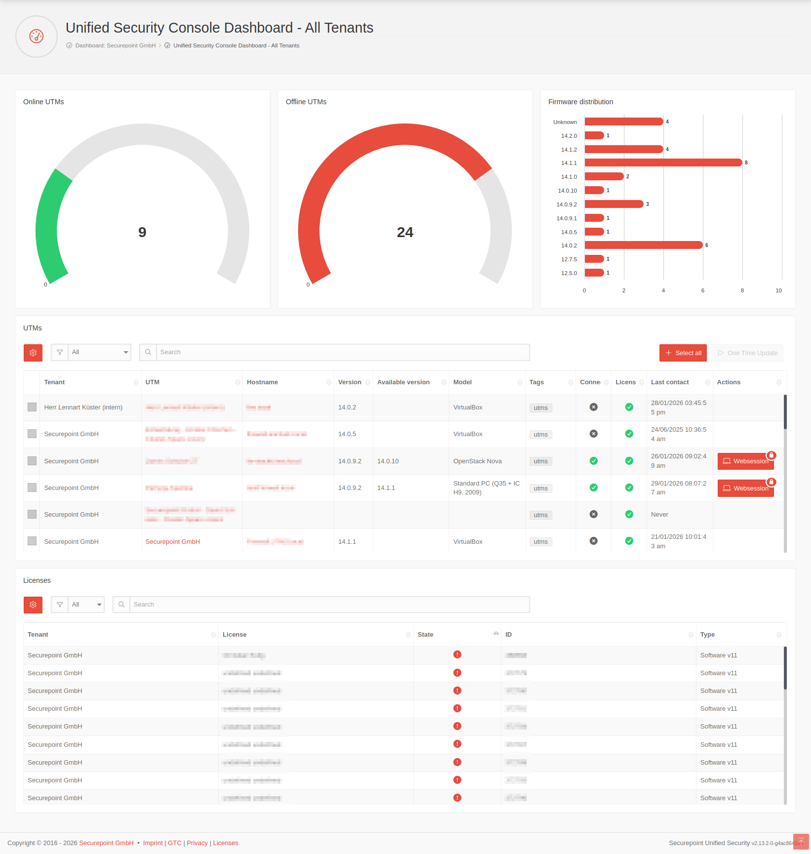 - Im UTM-Dashboard kann über die Schaltfläche Einmaliges Update die Updates der UTMs geplant werden