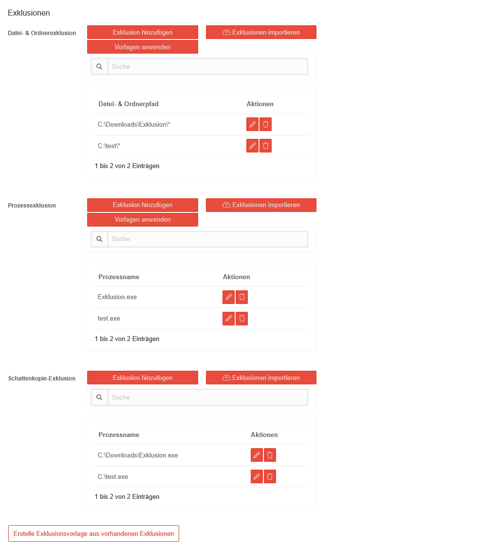 Erstelle Exklusionsvorlage aus vorhandenen Exklusionen Öffnet das Menü Exklusionsvorlagen in einem neuen Tab und erstellt eine Vorlage, die die vorhandenen Exklusionen enthält.