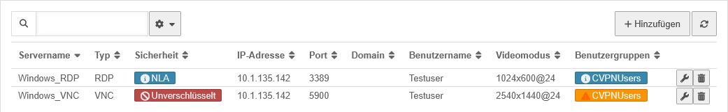 Hier werden alle Server eingetragen, die den Benutzern über das Userinterface per Clientless VPN verfügbar gemacht werden sollen.