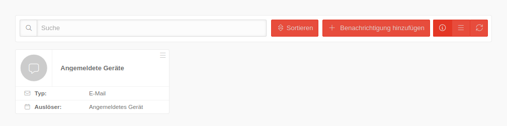 | »Angemeldetes Gerät | Benachrichtigung, wenn ein Gerät im Portal angemeldet wird. | ||||||