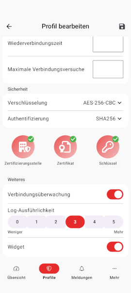 Das Profil wie gewünscht konfigurieren, siehe dazu Wiki-Artikel Android-Profil, und nach erfolgreichem Enrollment des Android-Gerätes ist die VPN-App einsatzbereit.