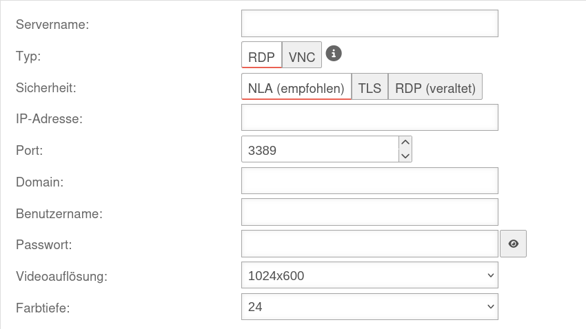 Typ: RDPVNC Dienst über den auf den Host zugegriffen werden soll