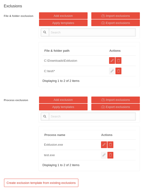 Öffnet das Menü Exclusion templates in einem neuen Tab und erstellt eine Vorlage, die die vorhandenen Exklusionen enthält.