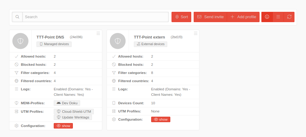| Using the Create profile button a new profile can be crated. The same configuration options are available during both, creation and editing.