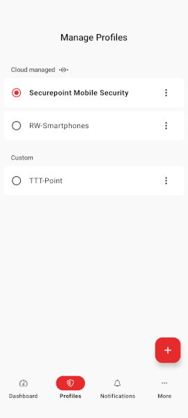 - In the profile tab Security option Activate Securepoint Mobile Security enable