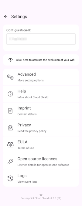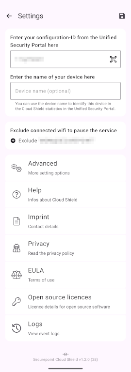| If an Android device is integrated in another MDM, i.e. not in Securepoint MDM, it is still possible to use the Cloud Shield app for this device.