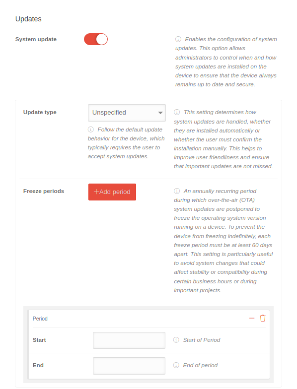 Depending on the option selected, the user can control the WiFi configuration either completely, only to a limited extent or not at all. This helps to control network access and prevent unauthorized WiFi connections.