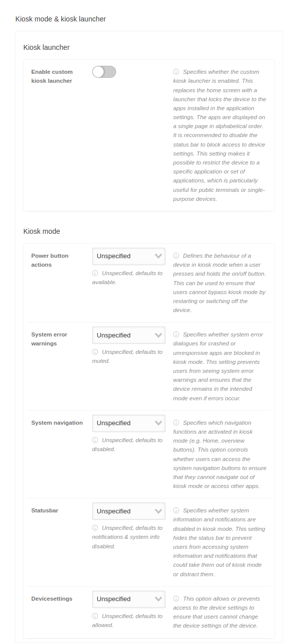 This can be used to ensure that users cannot bypass kiosk mode by restarting or switching off the device.