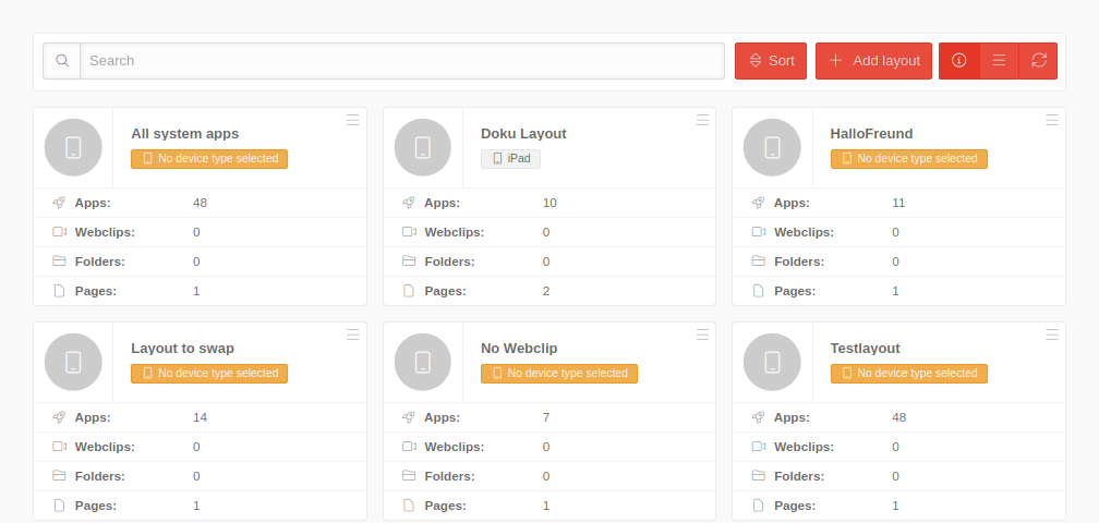 Screen layouts can be created for the Home Screen of Iphone, Ipad and AppleTV, which can then be used in a under the Home Screen Layout tab.