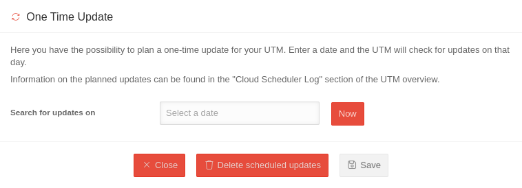 notempty Um diese Funktion nutzen zu können, müssen in den UTMs bei USC Permissions die Berechtigung Einmaliges Update aktiv Ja sein.