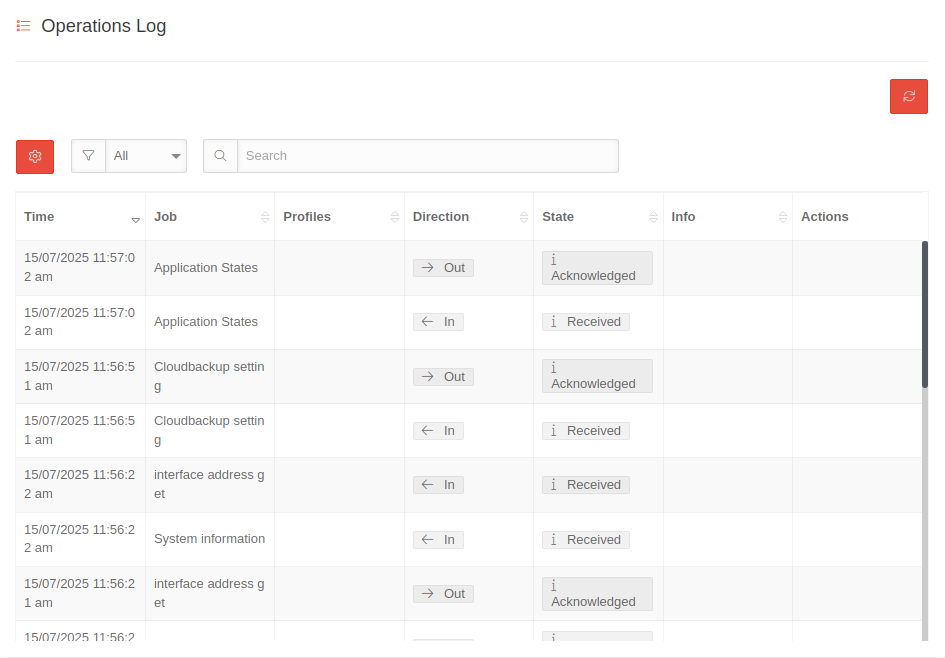 | Log of the communication between UTM and the Unified Security infrastructure The status of the transmitted UTM profiles is also logged here |