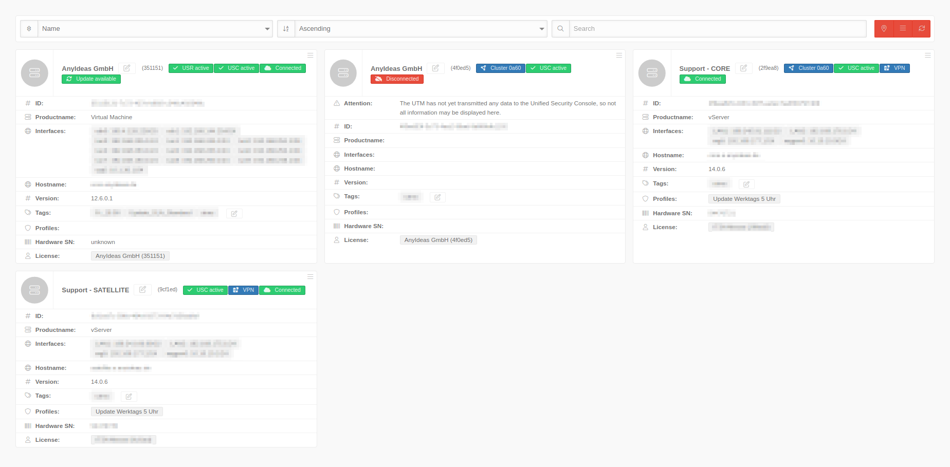 | USC active | Is active if the Unified Security Console service is enabled on the UTM in the menu. |