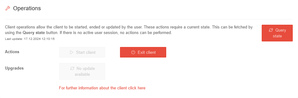 If an update is available, the client can be updated | |