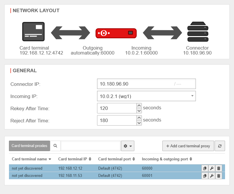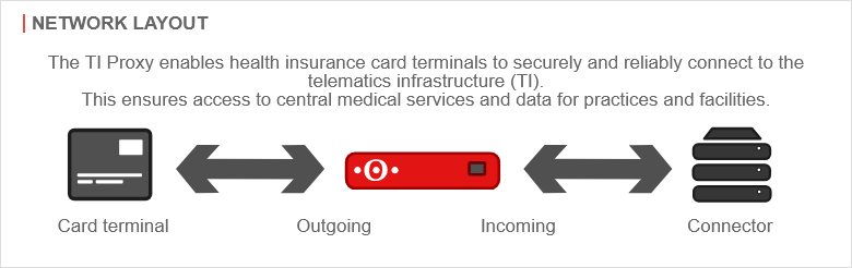 The TI proxy can be used to enable secure communication between card terminals and TI connectors of the telematics infrastructure. The proxy forwards the terminal's data traffic via a WireGuard tunnel to a cloud gateway that manages access to the telematics infrastructure.
