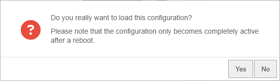 If a different configuration is loaded, you can select whether the current Captive Portal user list should be replaced by the user list from the configuration to be loaded (Yes), or whether the existing user list should remain unchanged (No).
