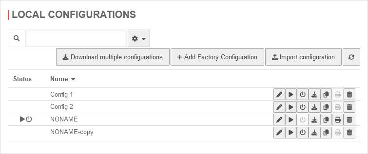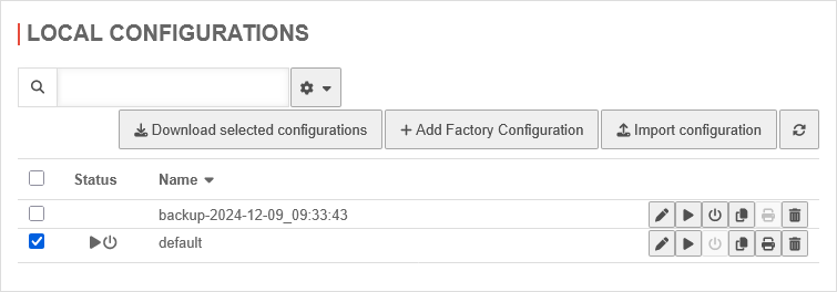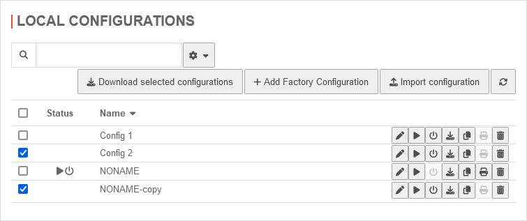 Use the checkboxes () on the far left to select the configuration you want to download. Then click on the Download selected configurations button. A .zip file containing the configuration(s) will be created.