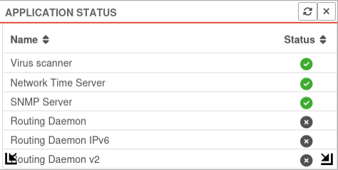 Displays the status of applications. Further notes can be found in a separate Wiki article. | ![]() | ||