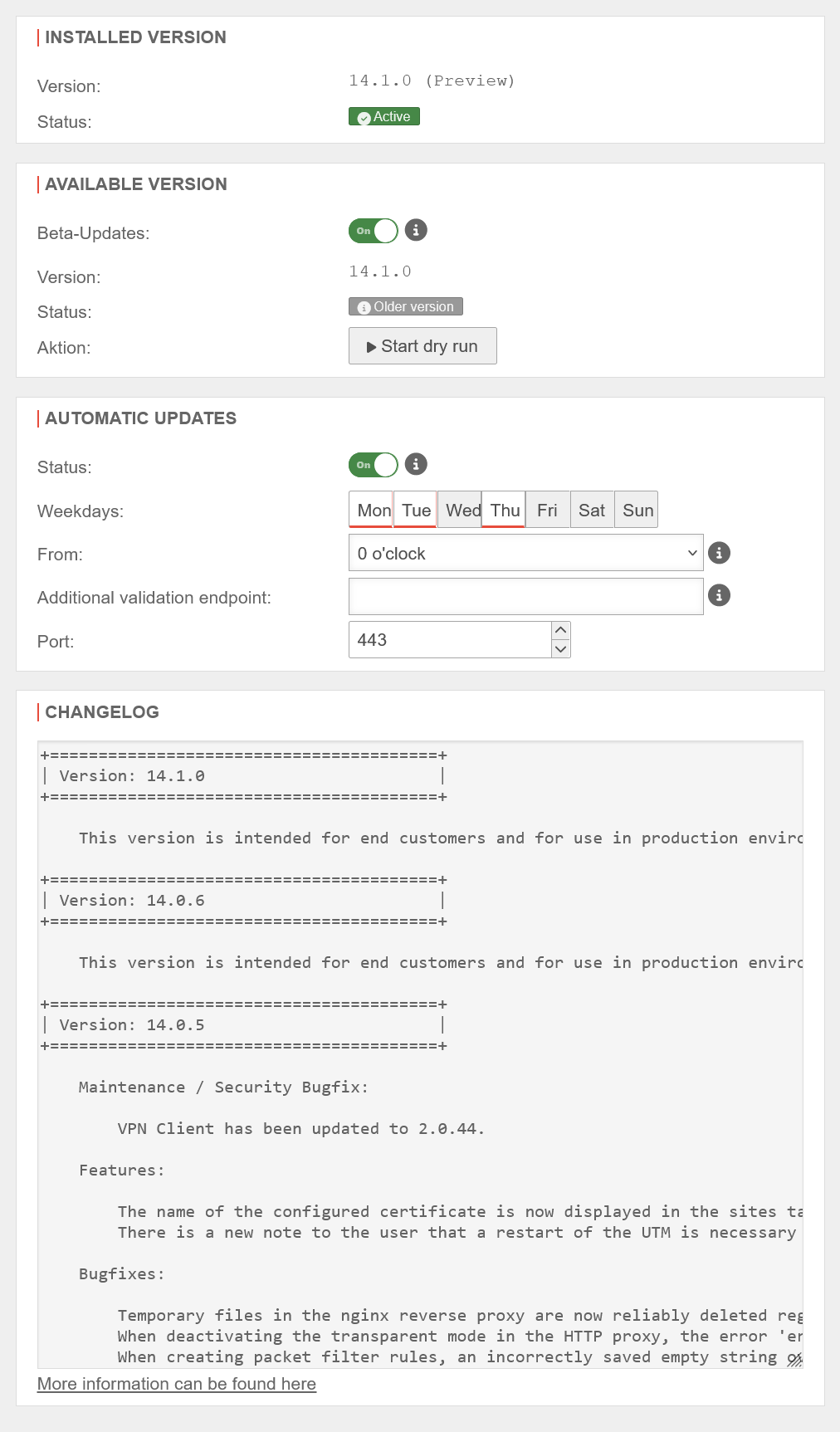 | Weitere Informationen finden Sie hier | A window opens with the note of the redirection to the Wiki article of the UTM-Changelog. | ||