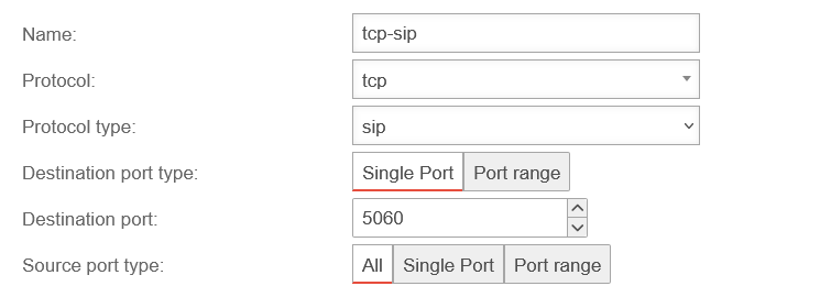 Yes, the predefined service sip (contained in the packet filter group voip) has the protocol type sip, which loads the Application Layer Gateway (ALG) modules. If VoIP is to be performed without the sip helper and thus without ALG, a new service must be created that uses port 5060 UDP without the protocol type sip.