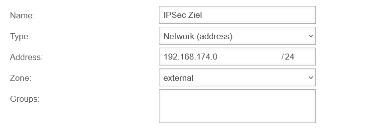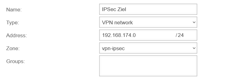 Even if it is only a single roadwarrior, a tunnel net IP is used for the connection. Therefore, the type Network must be selected here.